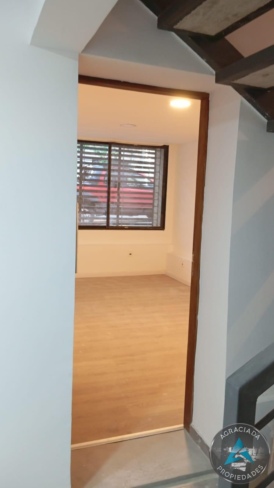 Unidad 001: escritorio/monoambiente en planta baja, con 28 m² totales que incluyen baño, cocina funcional y acceso a una terraza de uso exclusivo. Precio: U$S 66.000 IVA incluido más conexiones.